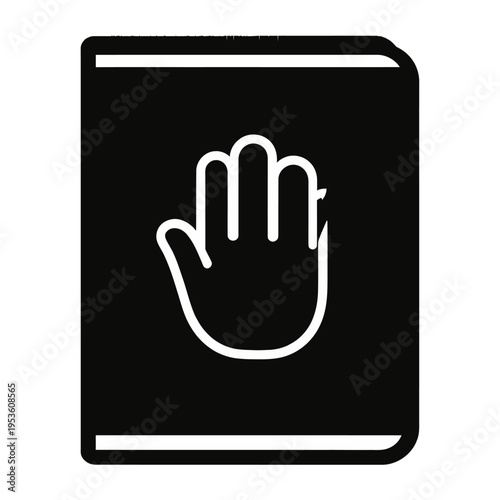 © Anvi, Obraz premium Vector of a black book with a raised hand gesture on the cover