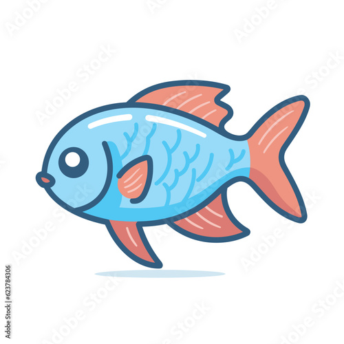 Fototapeta premium Vector of a flat icon of a blue and red fish on a white background