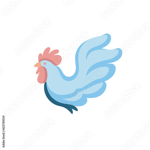 Obraz premium Vector of a flat icon of a blue chicken with a red comb on its head