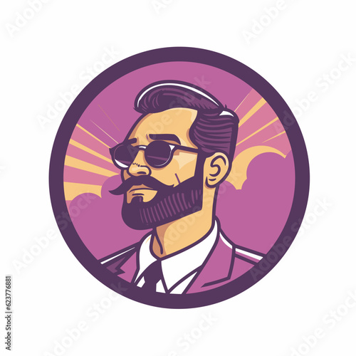 Obraz premium Vector of a man with a beard and sunglasses in a circle