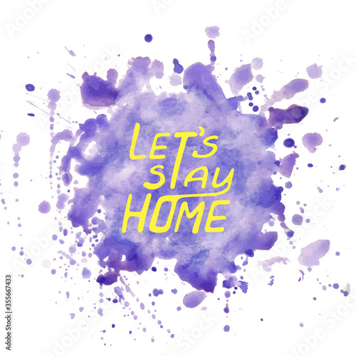 Fototapeta premium vector of a watercolor stain with the slogan lets stay home banner , poster, sign. Let's stay home card. Corona Virus 2019 covid Vector outline lettering. Ink illustration.watercolor design