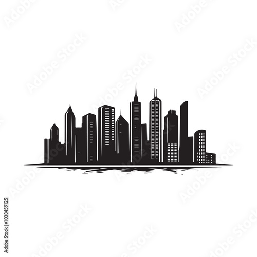 © R Hasan, Naklejka premium vector of black City Skyline Silhouette