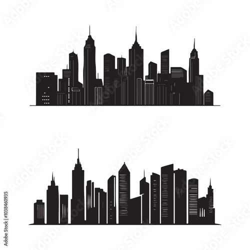 © R Hasan, Naklejka premium vector of black City Skyline Silhouette