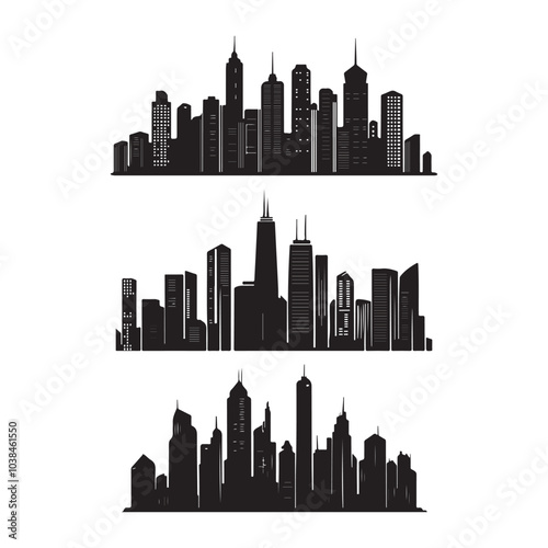 © R Hasan, Naklejka premium vector of black City Skyline Silhouette