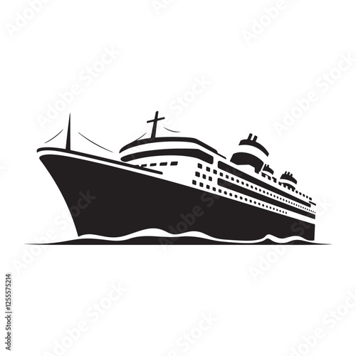 © R Hasan, Obraz premium vector of black silhouette of Cruise ship