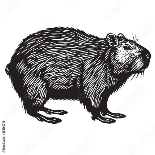 Fototapeta premium Vector of capybara black and white illustration, the world's largest rodent....