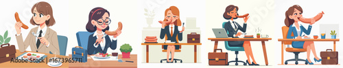 © sarah16blakeyxh2, Obraz premium vector of female secretary eating sausage