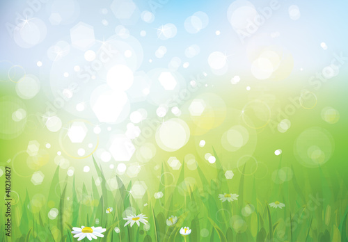 © rvika, Obraz premium Vector of spring background, sky and grass.