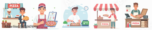 Obraz premium vector of young man selling pizza