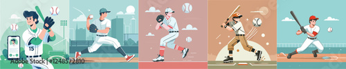 © sarah16blakeyxh2, Obraz premium vector of young men playing baseball