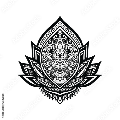 Obraz premium Vector ornamental Lotus flower, ethnic art, patterned Indian paisley. Hand...