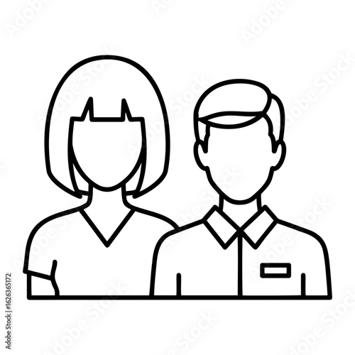 © QuickDesign24, Obraz premium Vector outline illustration of a woman and man standing next to each other on transparent background