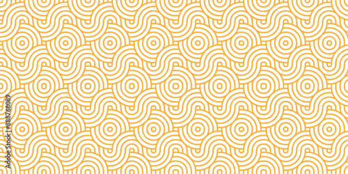 © MdLothfor, Fototapeta premium Vector overlapping Pattern Minimal diamond geometric brown and yellow waves abstract wave line. seamless tile stripe overlap creative retro circle line fabric pattern background.