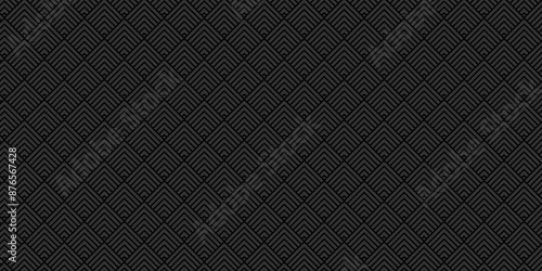 © MdLothfor, Fototapeta premium Vector Overlapping Pattern Minimal diamond geometric digital wave backdrop abstract wave square background. black line seamless tile stripe overlap creative retro square pattern white background.