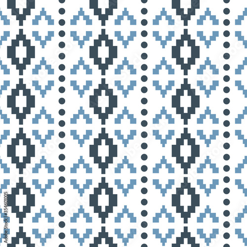 © designer_27, Fototapeta premium Vector pastel blue tribal geometric with dots seamless pattern background