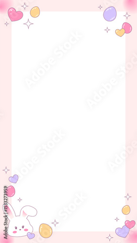 Fototapeta premium Vector pastel frame is showcasing rabbit, hearts, egg, stars on transparent...