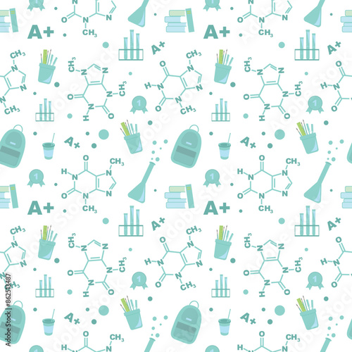 © Viktoriia Nam, Fototapeta premium vector pattern chemistry of blue-gray accessories without background