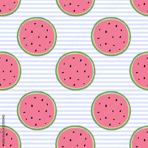 Fototapeta premium vector pattern of red watermelon slices on a striped background