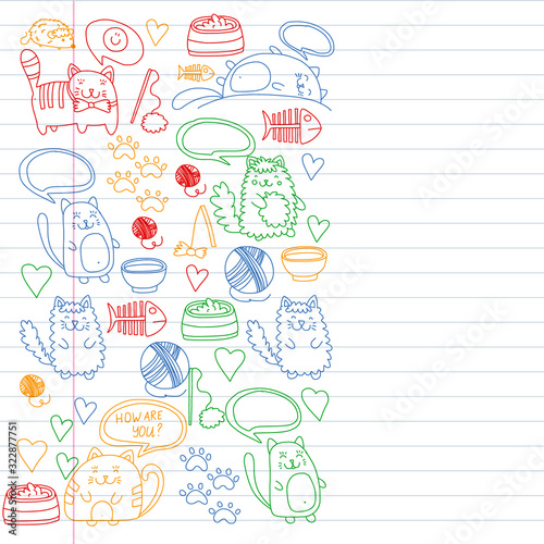 © rudut2015, Fototapeta premium Vector pattern with cute little cats and kittens for children.