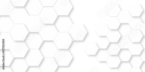 © MdLothfor, Fototapeta premium Vector pattern with hexagonal white and gray technology line paper background. Hexagonal 3d grid tile and mosaic structure mess cell. white and gray hexagon honeycomb geometric copy space.