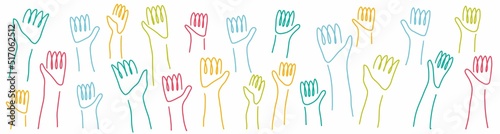 © Abundzu, Obraz premium Vector pattern with multicolored hands raised up