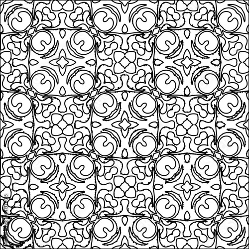 © t2k4, Obraz premium Vector pattern with symmetrical elements . Modern stylish abstract texture. Repeating geometric tiles from striped elements.Black and white pattern.