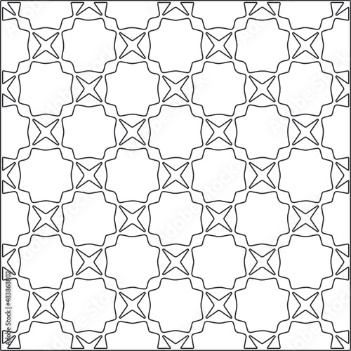 Fototapeta premium Vector pattern with symmetrical elements . Repeating geometric tiles from striped elements.Monochrome texture.Black and white pattern for wallpapers and backgrounds.line art.