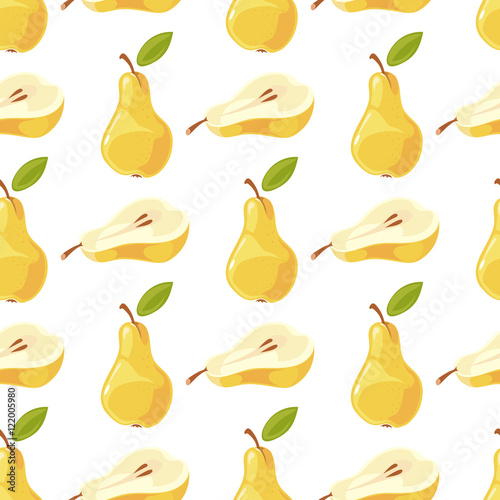 © MicroOne, Obraz premium Vector pears and slices seamless pattern