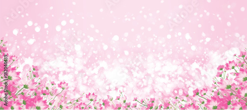 © rvika, Fototapeta premium Vector pink floral border on pink bokeh background.