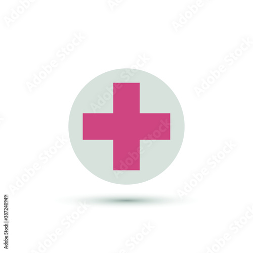 Fototapeta premium Vector pink plus icon in round shape. Add, correct symbol. For design,...