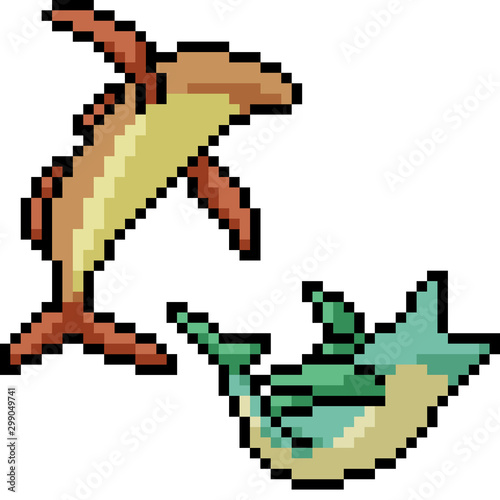 © Saphatthachat, Obraz premium vector pixel art fish jump