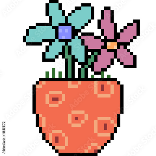 © Saphatthachat, Obraz premium vector pixel art flower pot