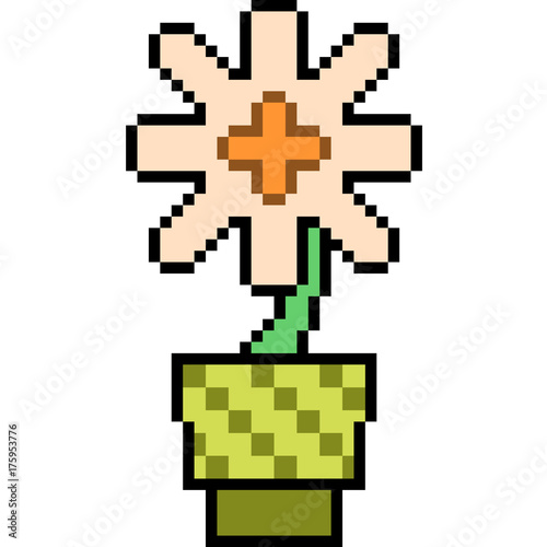 © Saphatthachat, Obraz premium vector pixel art flower pot