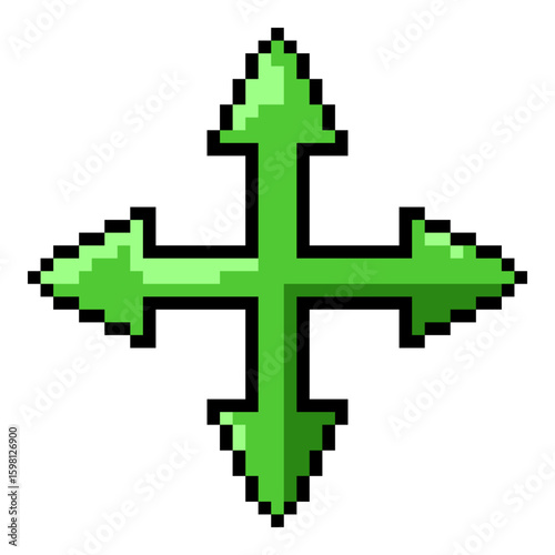 Fototapeta premium Vector Pixel Art - Green Cross Arrows Icon