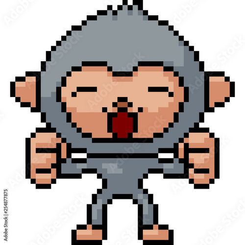 © Saphatthachat, Obraz premium vector pixel art happy monkey