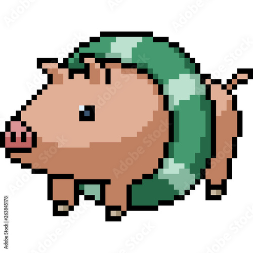 © Saphatthachat, Obraz premium vector pixel art pig lifebuoy
