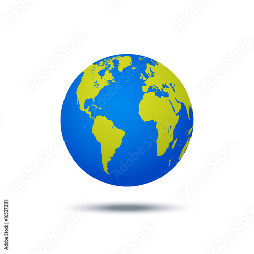 © kolonko, Naklejka premium Vector planet icon. Web illustration background. Isolated earth globe. World map design. Global sphere planet symbol