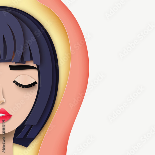 © Meranna, Fototapeta premium Vector portrait of young beautiful woman with short hair. Modern digital paper layered art. Origami style. Beauty and fashion concept