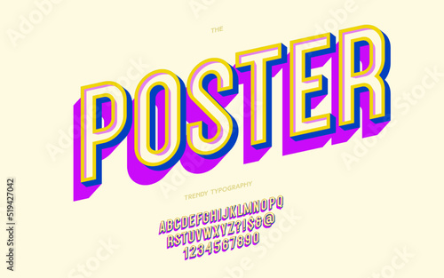 © Chikichirony, Fototapeta premium Vector poster font 3d bold style for t shirt, flyer, printing, decoration, banner, infographics, motion graphic, party poster, book, music, game, industrial. Cool typeface. Trendy alphabet. 10 eps