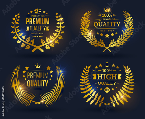 Fototapeta premium Vector quality emblems with laurel wreath.