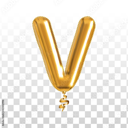© comicsans, Obraz premium Vector realistic isolated golden balloon letter V on the transparent background.