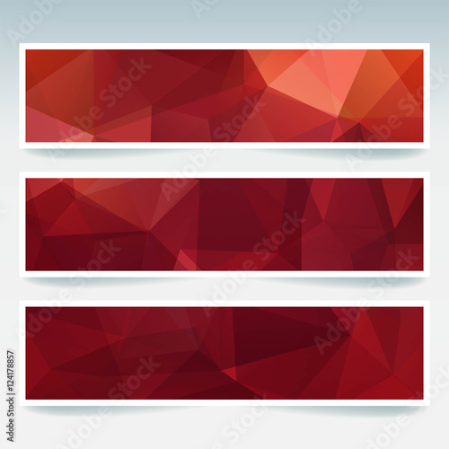 Fototapeta premium Vector red banners set with polygonal abstract triangles. Abstract polygonal low poly banners