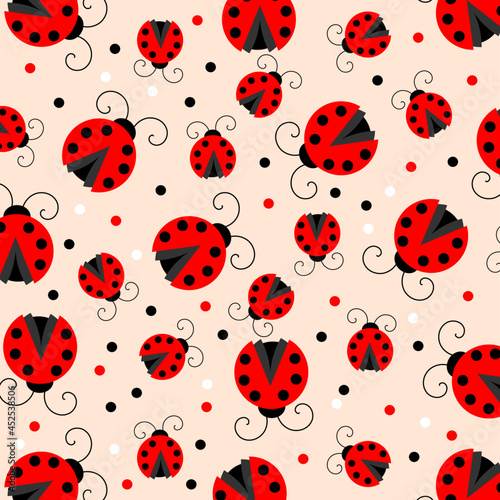 Fototapeta premium Vector red ladybug Seamless Pattern Background. Summer textile print design
