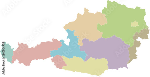 © asantosg, Naklejka premium Vector regional blank map of Austria with federal states or territories and administrative divisions. Editable and clearly labeled layers.