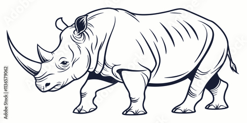 Fototapeta premium Vector Rhinoceros Line Art, isolated white background