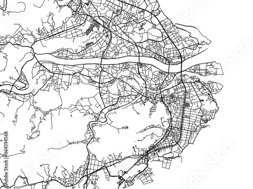 Fototapeta premium Vector road map of the city of Anan in Japan with black roads on a white background. 4:3 aspect ratio.