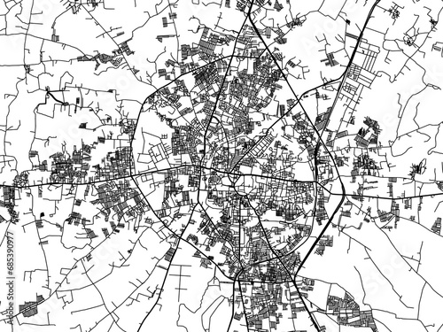 Naklejka premium Vector road map of the city of Bijapur in the Republic of India with black roads on a white background.