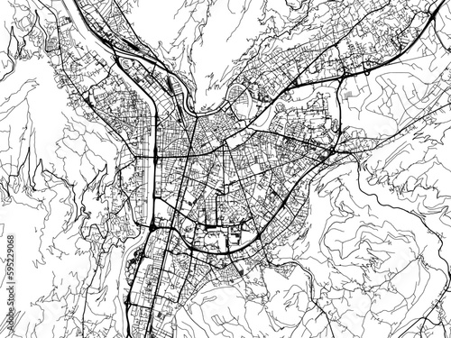 Naklejka premium Vector road map of the city of Grenoble in France on a white background.