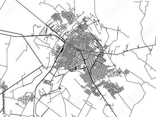 Naklejka premium Vector road map of the city of Guamuchil in Mexico with black roads on a white background.