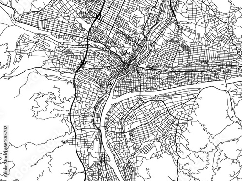 Naklejka premium Vector road map of the city of Ina in Japan with black roads on a white background. 4:3 aspect ratio.